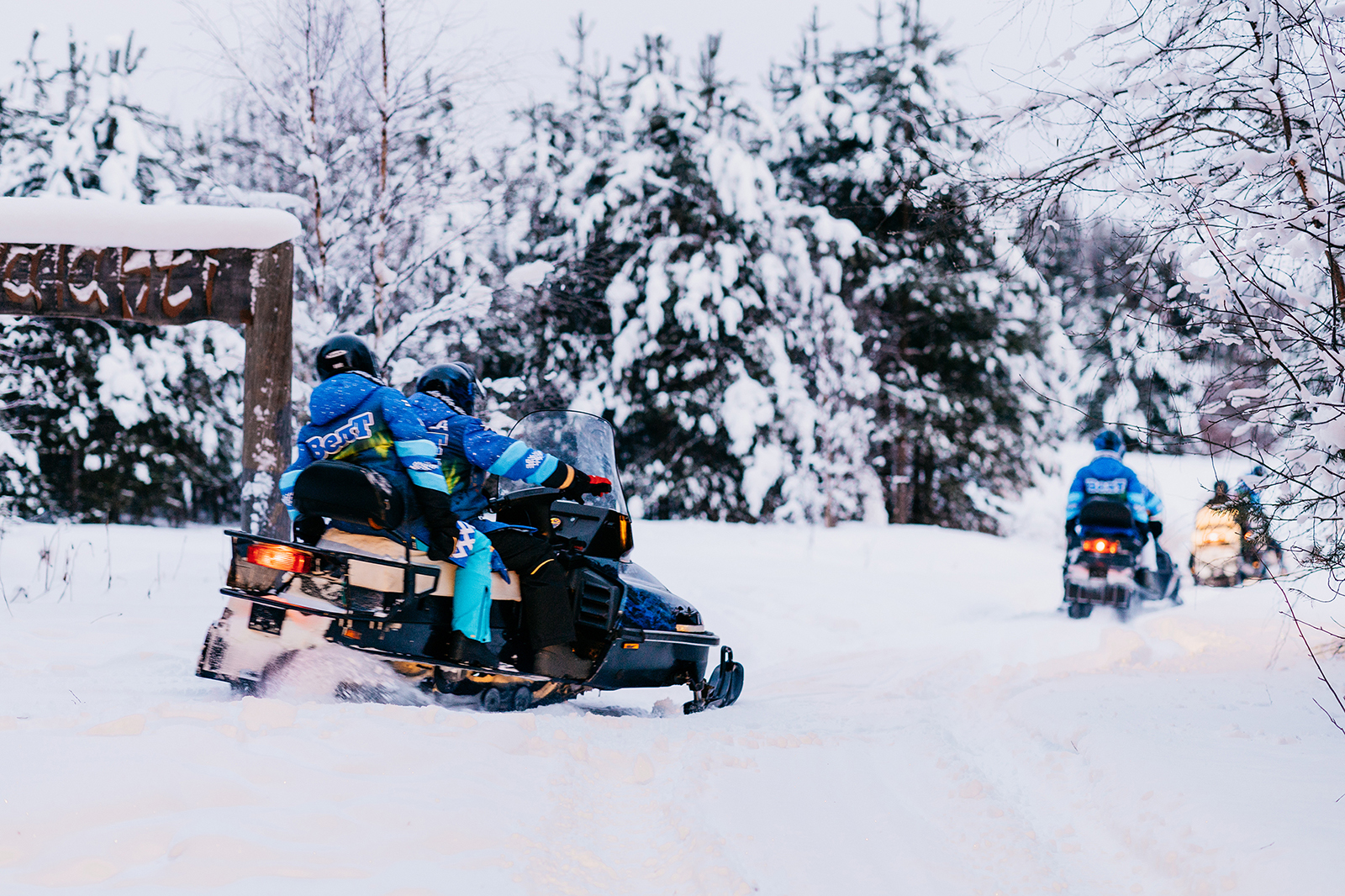 Сафари на снегоходах в Карелии «Ледовый пробег» — это легкое, но интересное путешествие на снегоходах по заснеженным окрестностям Калевалы. Это не упрощенные «покатушки» по равнине озера, а настоящее сафари на снегоходах в Карелии. Вы обязательно проедете и по изумрудной тайге, и по снежному озеру, и по замерзшим болотам. Это короткое, но очень увлекательное путешествие!